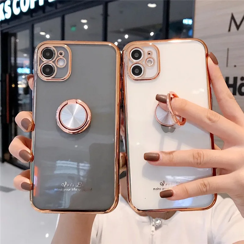 ФЛУОРЕСЦЕНТНОЕ покрытие прозрачное металлическое кольцо держатель кронштейн силиконовый чехол для телефона iPhone 11 Pro Max XS XR X 8 7 plus SE 20 чехол