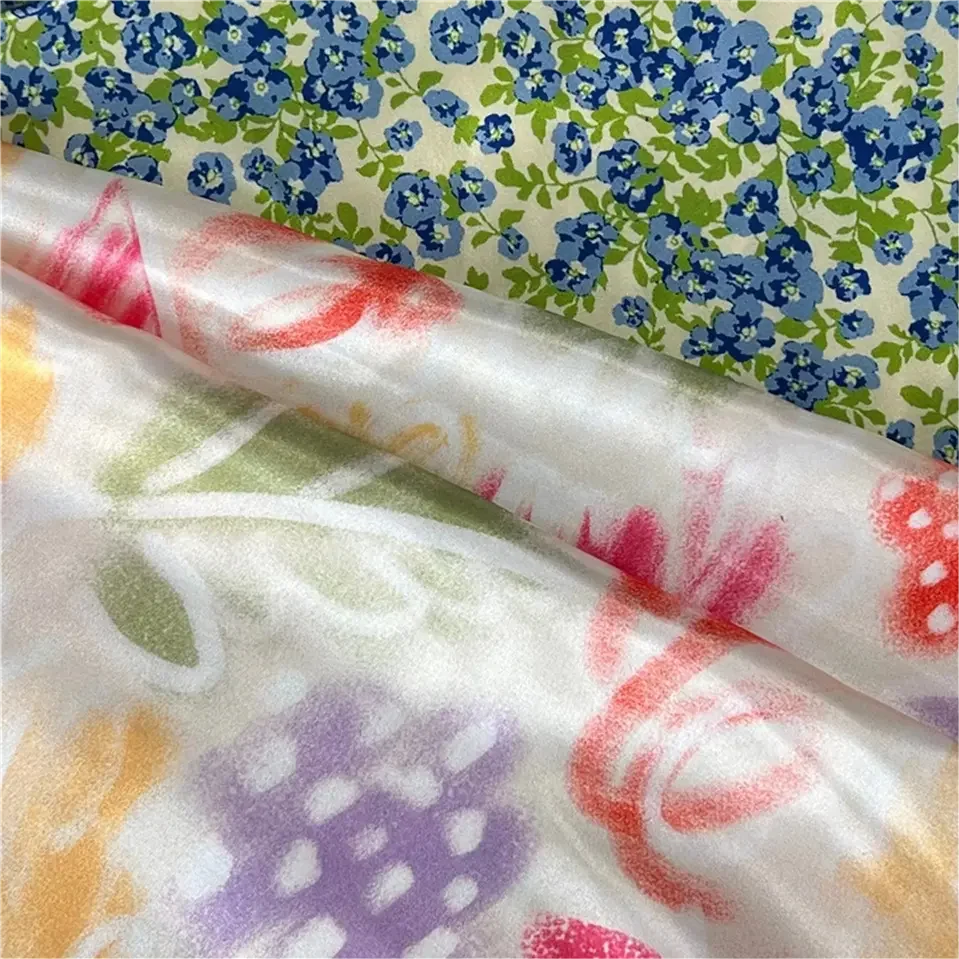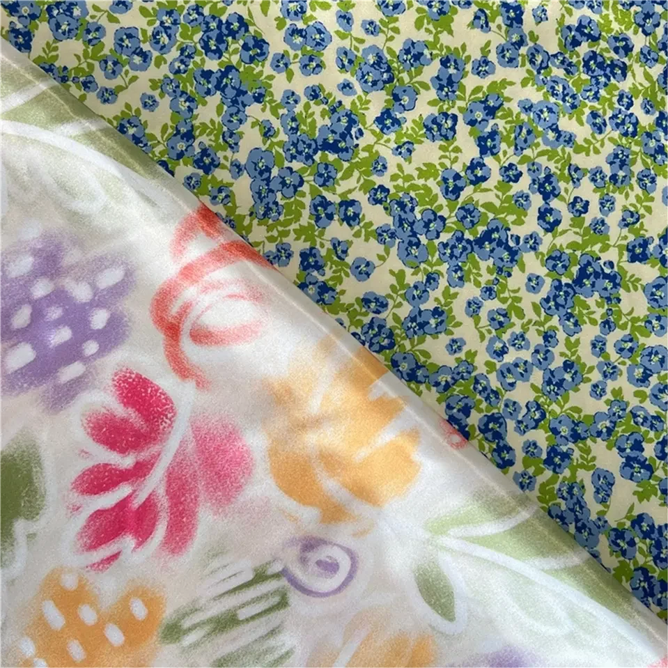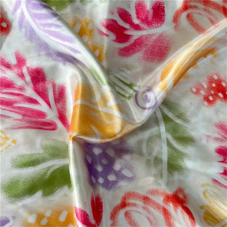 Фабричная атласная полиэфирная ткань с принтом на заказ, тканая шелковая атласная ткань с цветочным принтом