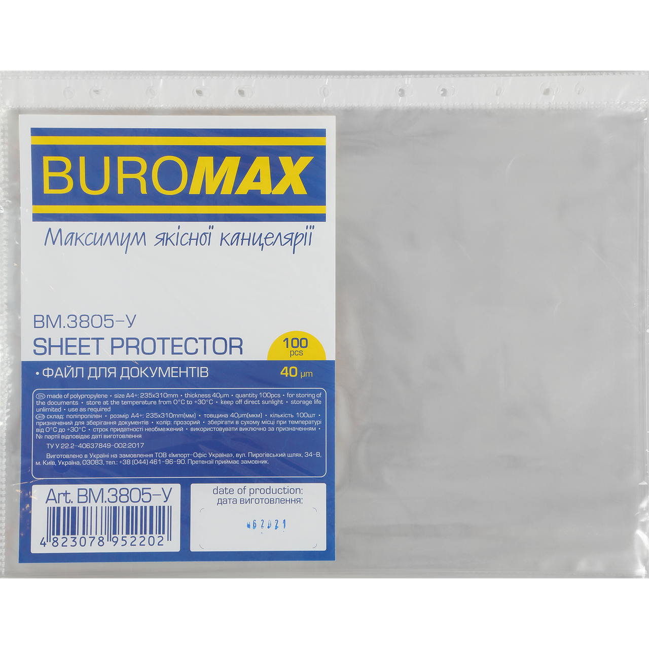 Файл для документів, А4+, 40мкм, 100шт. в упаковці BM.3805-y