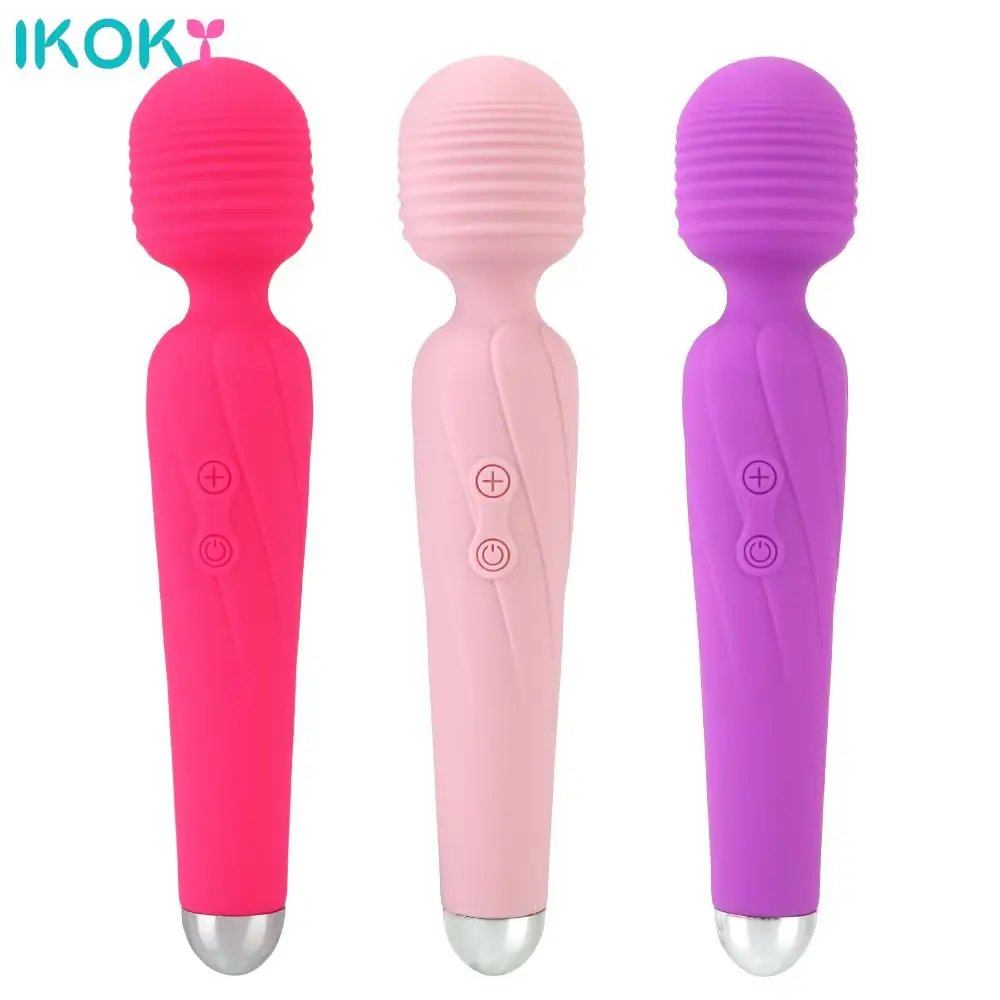 Фаллоимитатор IKOKY, 10 режимов, волшебная палочка, вибраторы, USB, перезаряжаемый, Женский мастурбатор, Стимулятор клитора, соска, интимные игру...