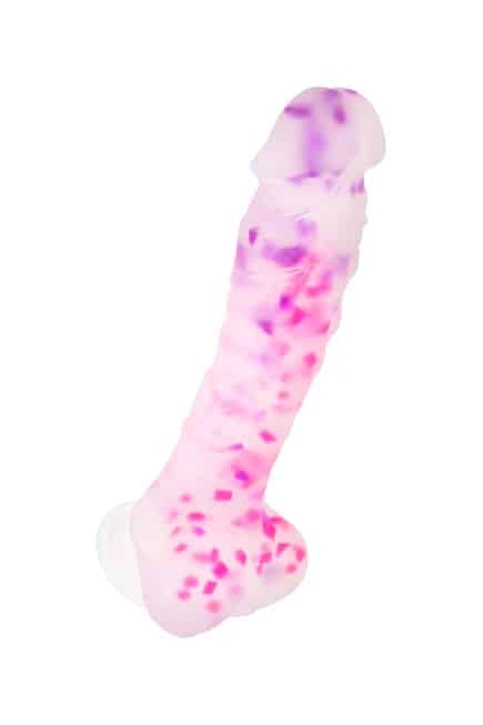 Необычный дизайн в виде прозрачного силикона с цветными вкраплениями идеально подходит для тех, кто не готов к реалистичным игрушкам и хочет разнообразить сексуальную жизнь.