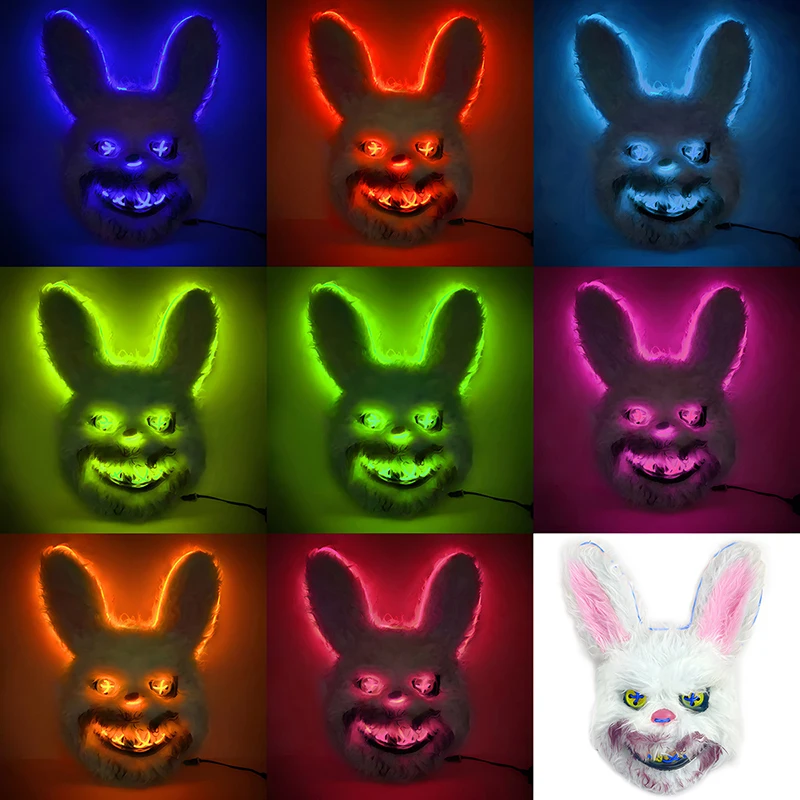 New Luminous Animal Mask Halloween Horror Bloody Rabbit Bear Decoration Prop Simulation Fur Mask Role Playing Costume Party Dec