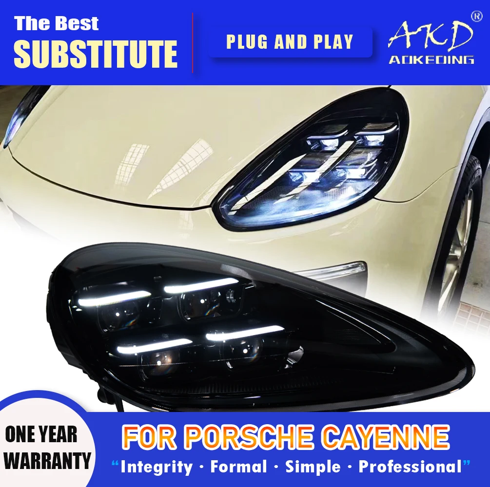 AKD Head Lamp for Porsche Cayenne LED Headlight 2011-2018 Headlights Cayenne DRL Turn Signal High Beam Angel Eye Projector Lens