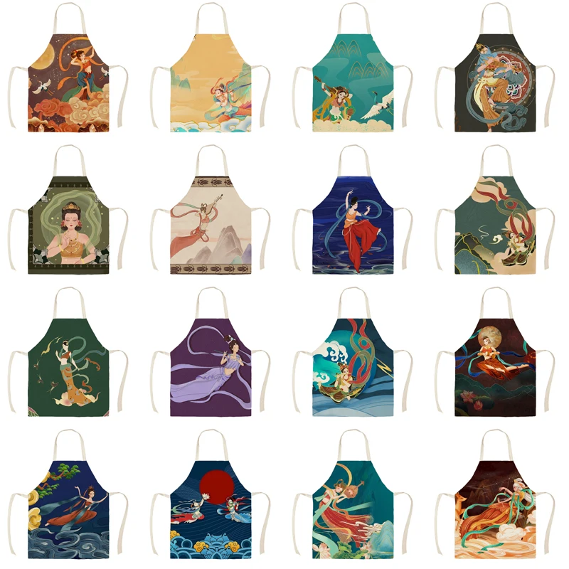 Фартук Flying Dunhuang для взрослых и детей, кухонный Льняной Фартук с принтом для уборки дома, приготовления пищи, защита от загрязнений