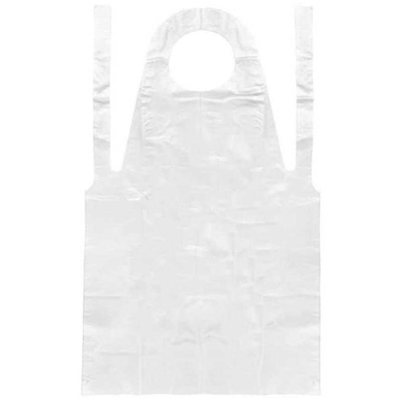 Поліетиленовий одноразовий фартух легкий у догляді, економічний і зручний. Найчастіше використовується в перукарнях, на виробництві, в медицині та інших областях, захищаючи одяг від попадання води, фарбувальних, хімічних та інших речовин.