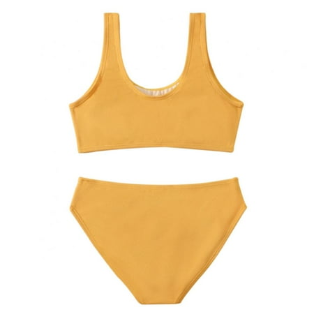 Girls Solid Swimsuits Bathing Suits Bowknit Crop Top And Bikini Bottoms Quick Dry Swimwear Kids Sunsuit Suit 7-11 Years