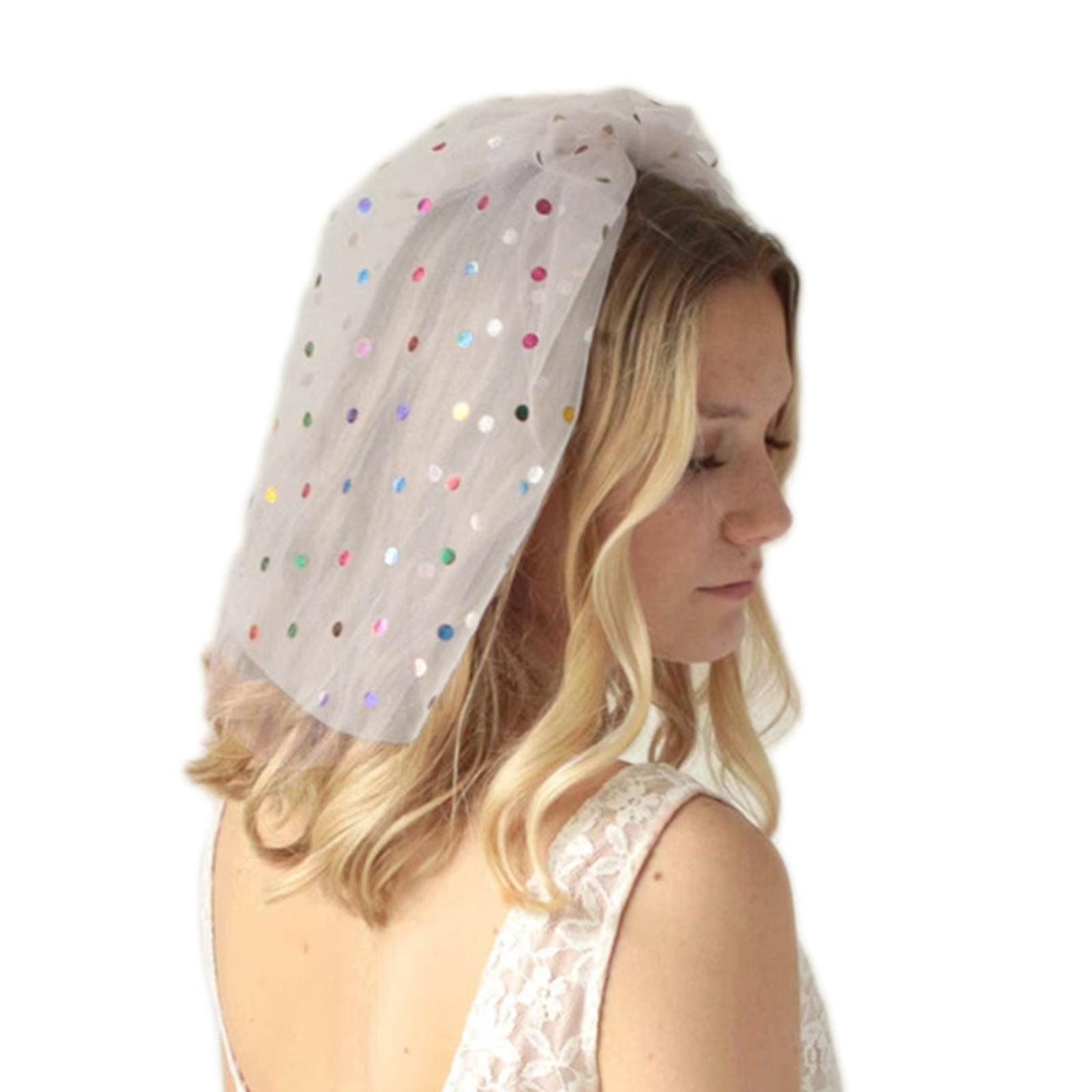 Фата невесты Простая фатина с радужными блестками Короткая фата невесты для девичника Девичник Платок на голову для девичника белый