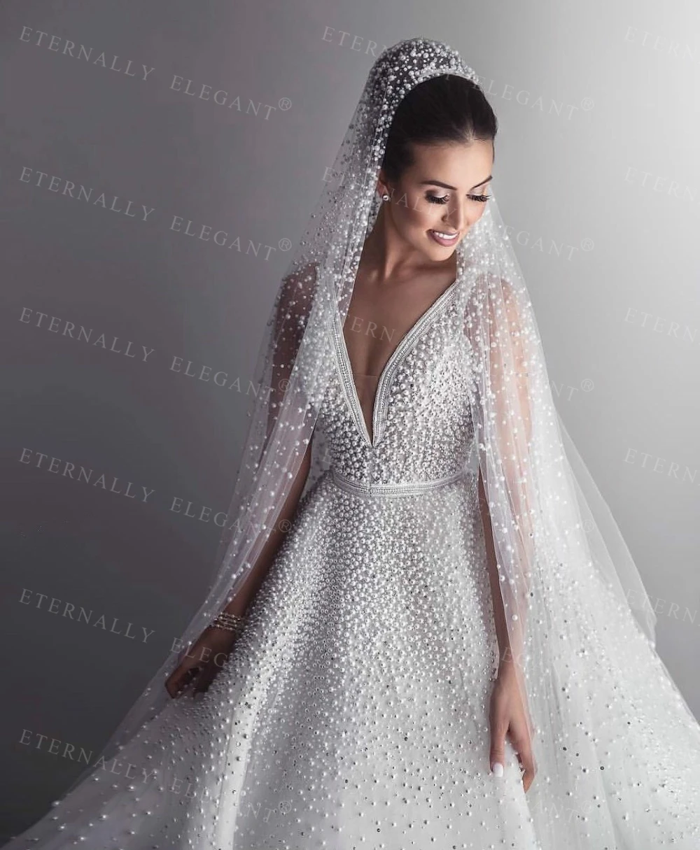 Фата свадебная женская с жемчугом, фата свадебная с жемчугом, цвет слоновой кости, модель EE705, длиной 3 м