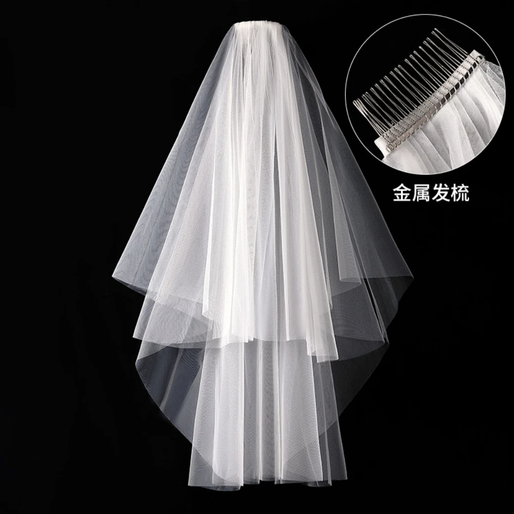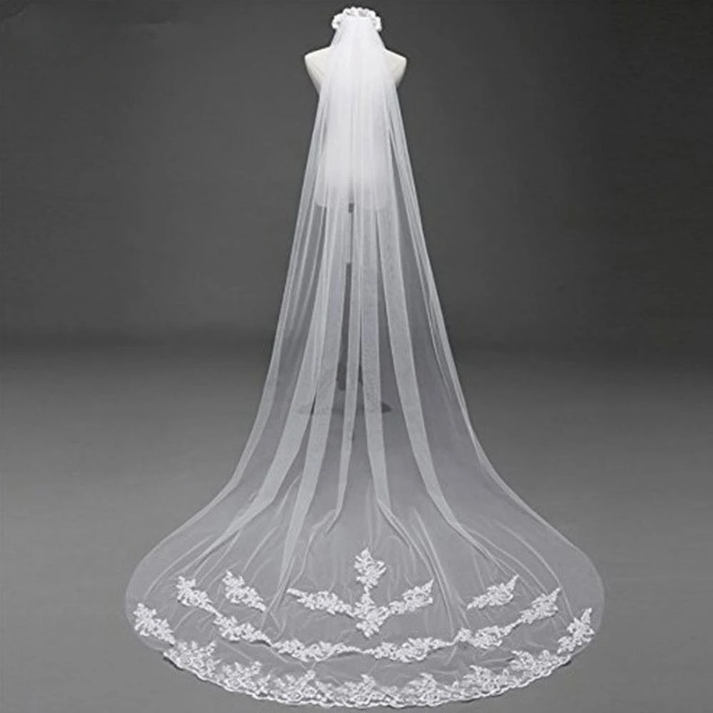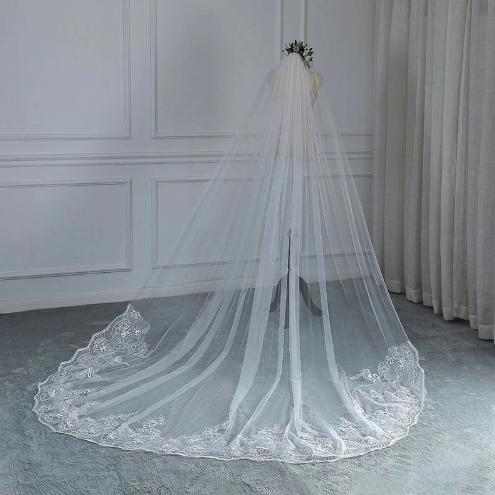 Фата свадебная из Мягкого Тюля, кружевная с аппликацией и расческой, свадебный аксессуар, белый цвет
