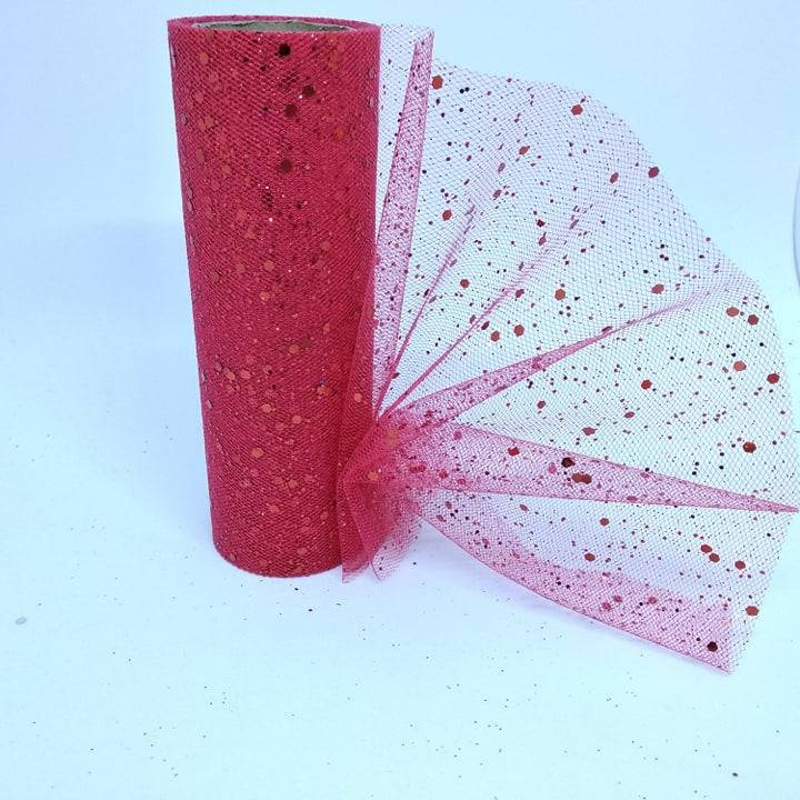 Фатин 15см с крупным глиттером красного цвета, Красный