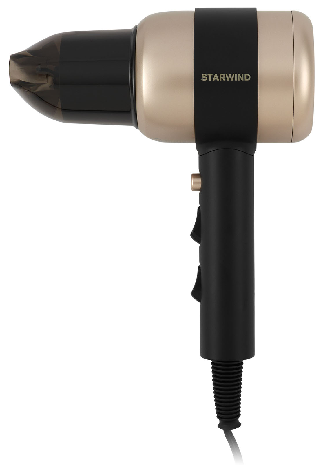Фен Starwind SHD 7072 1.8 кВт, режимов: 3, насадок: 1, черный/золотистый, SHD 7072