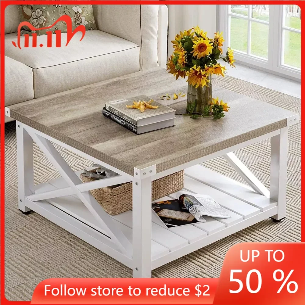 Фермерский журнальный столик для гостиной, квадратный деревянный журнальный столик с открытой полкой для хранения, мебель для гостиной, боковой столик