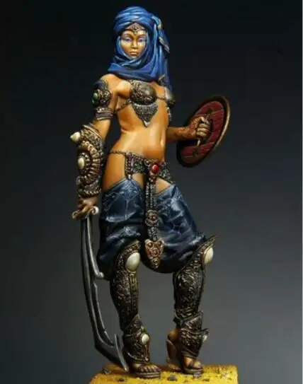 Фигурка древняя женщина-воин в разобранном виде 1/24, 75 мм, фигурка из смолы с мечом, набор Неокрашенная модель