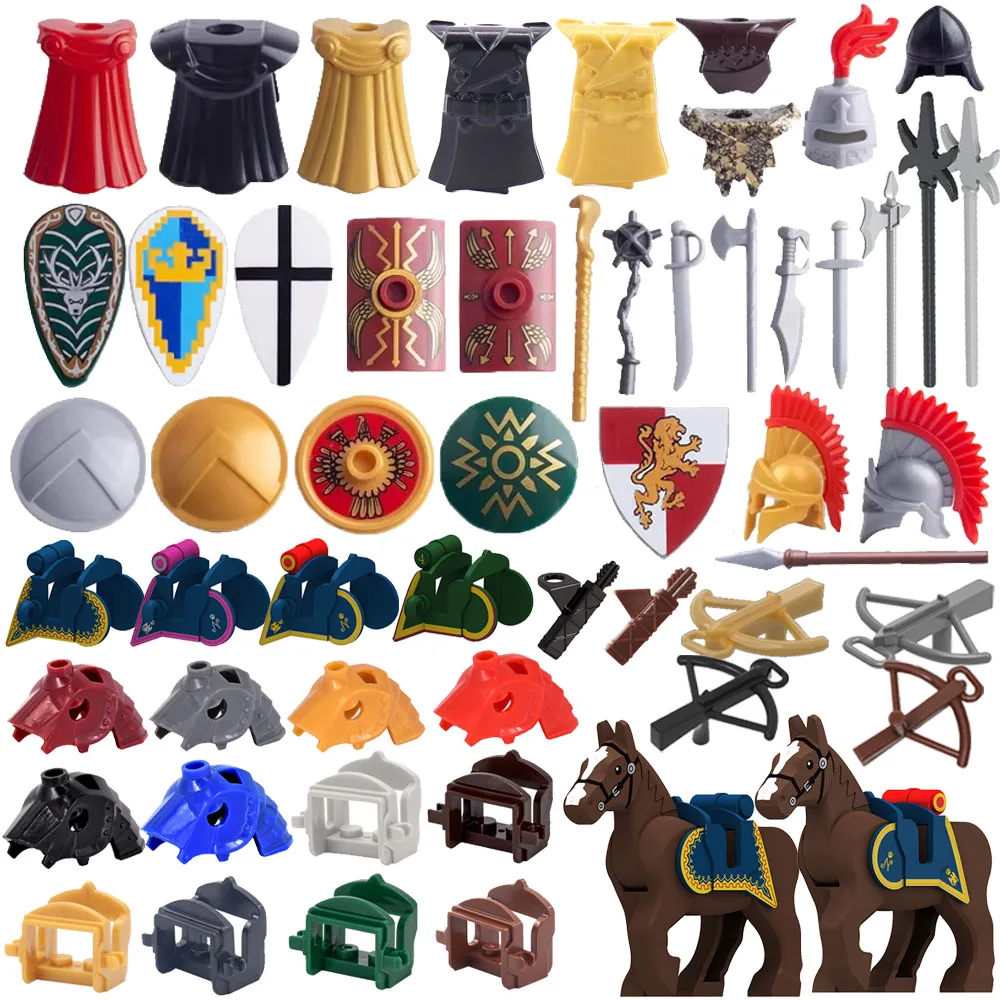 MOC Medieval Soldier Figure Building Block Warhorse Cloak Sword Saddle Helmet Military Accessories Gift Toys Kids Bricks
