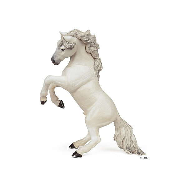 Игровая реалистичная фигурка лошади белой масти, стоящей на дыбах, выполнена с высокой степенью детализации, тщательно обработана, окрашена вручную. Точно передан окрас и характерные особенности животного.
