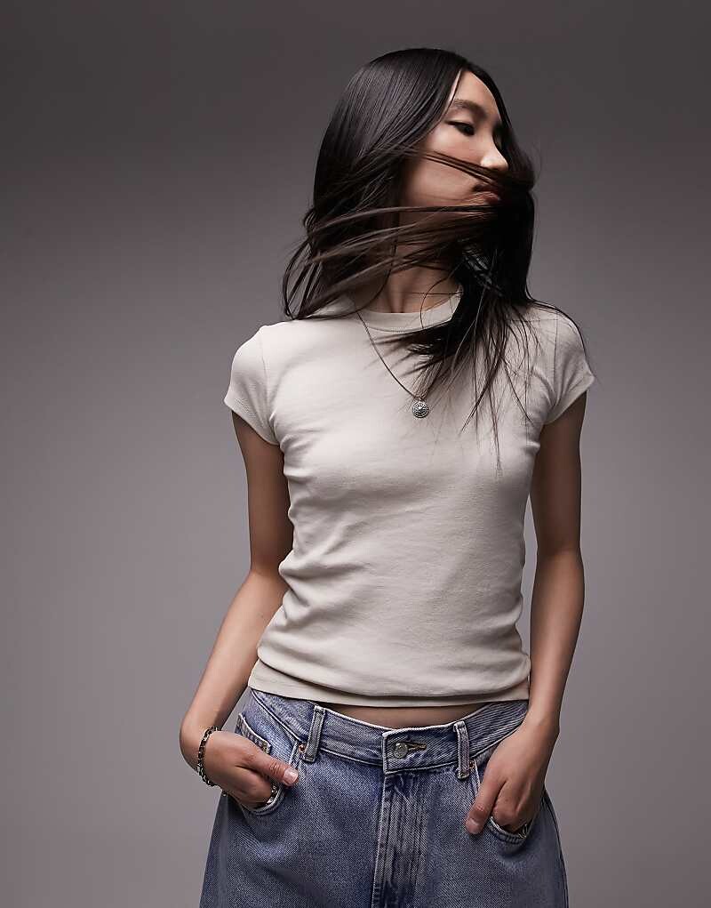 Vintage geometric print round neck bat-sleeve loose pullover 2025 summer women's top fashion all match irregular shirt