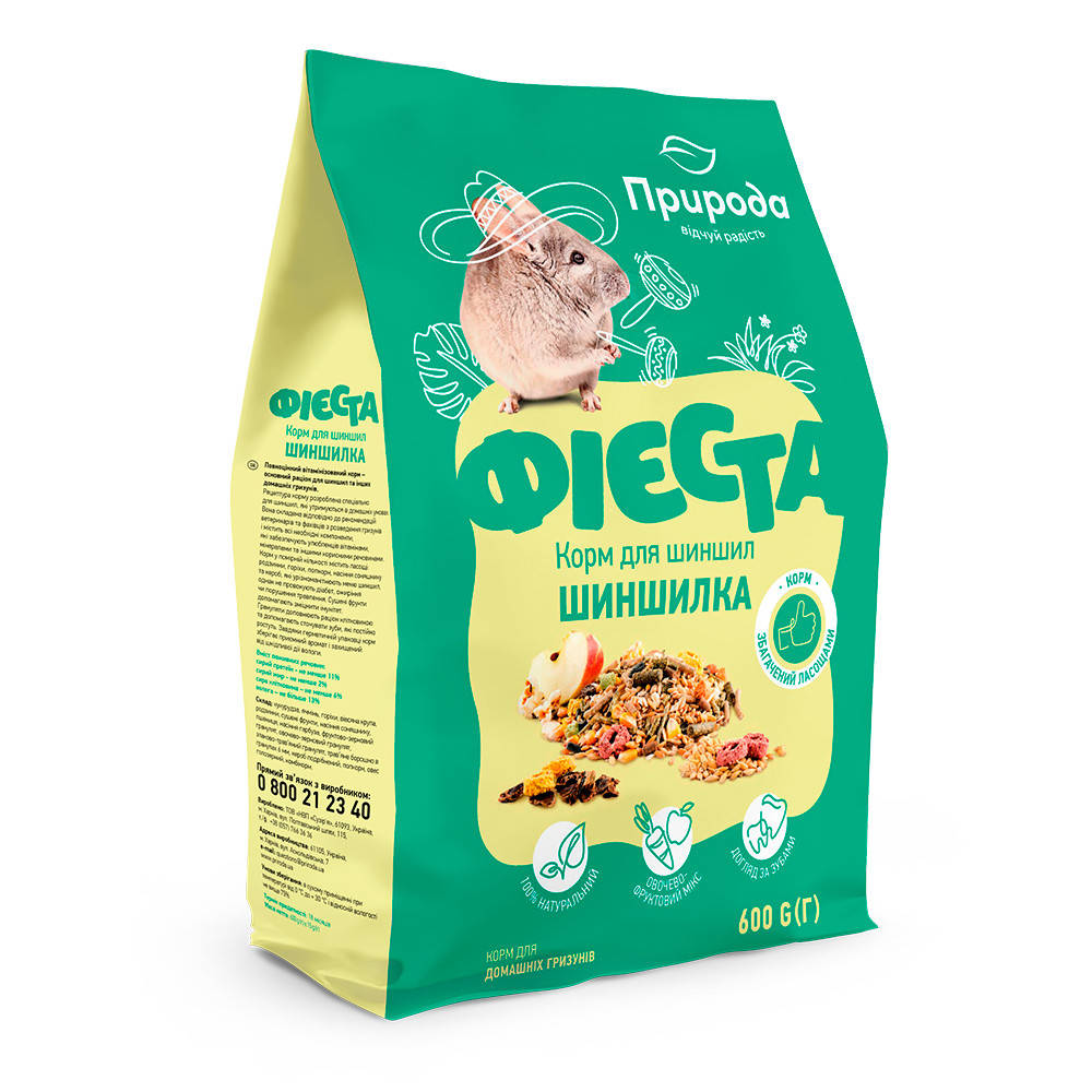 Рецептура корма разработана специально для шиншилл, содержащихся в домашних условиях. Она составлена в соответствии с рекомендациями ветеринаров и специалистов по разведению грызунов и содержит все необходимые компоненты, которые обеспечивают любимцев витаминами, минералами и другими полезными веществами. Корм в умеренном количестве содержит лакомства: виноград сушеный, арахис, попкорн, семечки подсолнечника и кероб, которые разнообразят меню шиншилл, однако не провоцируют диабет, ожирение или нарушение пищеварения. Сушеные фрукты помогают укрепить иммунитет. Грануляты дополняют рацион клетчаткой и помогают стачивать зубы, которые постоянно растут. Благодаря герметичной упаковке корм сохраняет приятный аромат и защищен от вредного воздействия влаги.Применение:кормить 2-3 раза в день небольшими порциями. Корм каждый раз насыпать в чистую сухую кормушку. Обязательно в поилке должна быть свежая вода.Состав: кукуруза, ячмень, арахис, овсяные хлопья, виноград сушеный, яблоко сушеное гранулированный, семена подсолнечника, пшеница, семена тыквы, фруктово-зерновой гранулят, овоще-зерновой гранулят, злаково-травяной гранулят, травяной гранулят в ассортименте, кероб измельченный, овес голозерный, комбикорм.