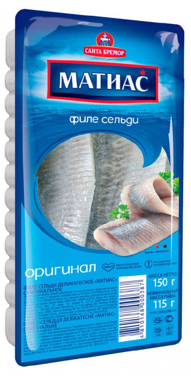 Филе сельди деликатесное «Матиас» оригинальное – яркий образец сельди в лучшем виде. Производится из атлантической сельди, выловленной в чистейших прибрежных водах Норвегии. «Матиас» - сельдь в лучшем виде: нежное филе без костей, крупный размерный ряд, филе богато жирными кислотами Омега-3, не содержит глутамат натрия.
