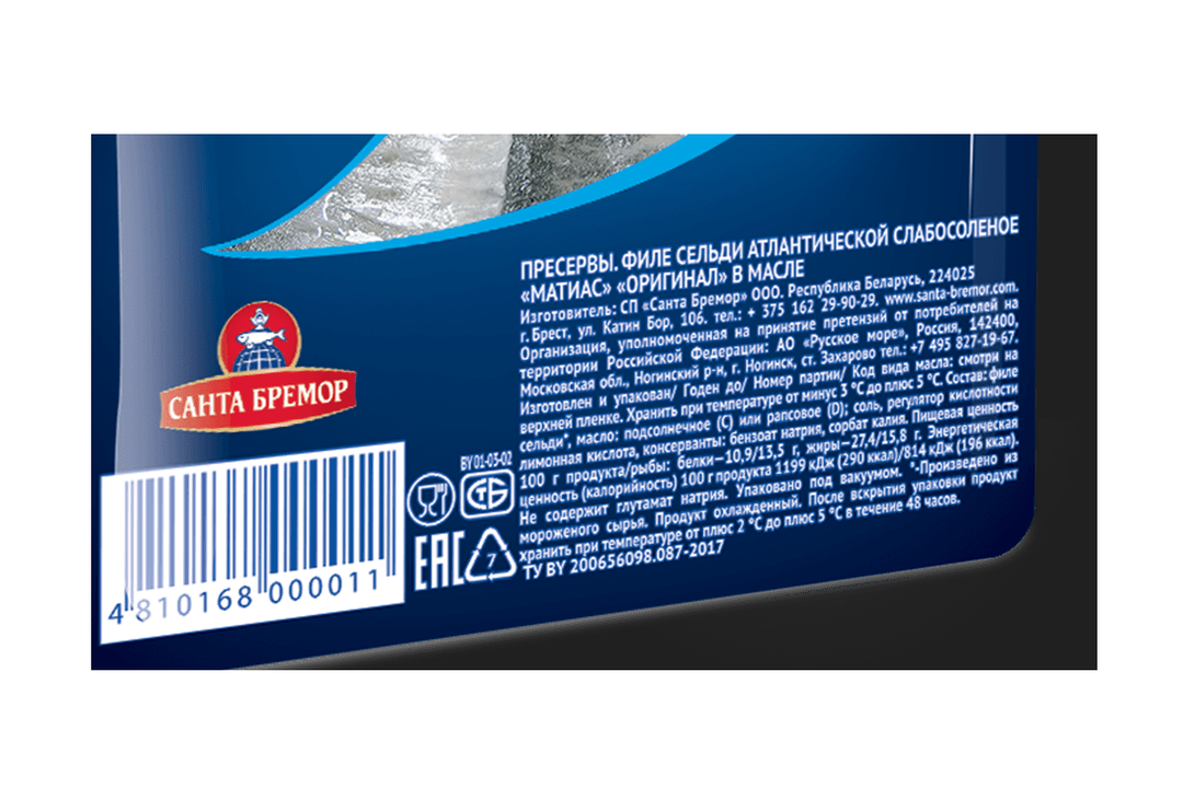 Сельдь атлантическая Матиас Оригинал филе слабосоленое в масле 250 г