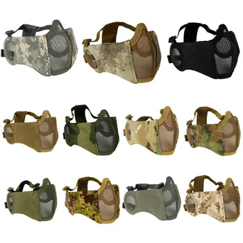 2019 Foldable Tactical Half Face Protective Mask Mesh Lower Face Mask with Ear Protection for Military Paintball Hunting Airsoft