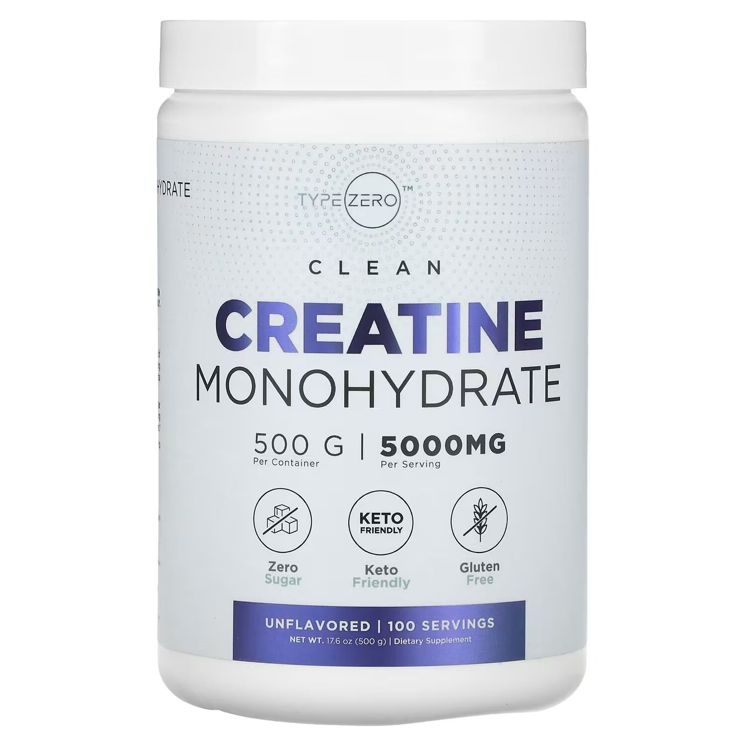 Clean, Моногидрат креатина, без вкуса, 5000 мг, 17,6 унции (500 г) Typezero