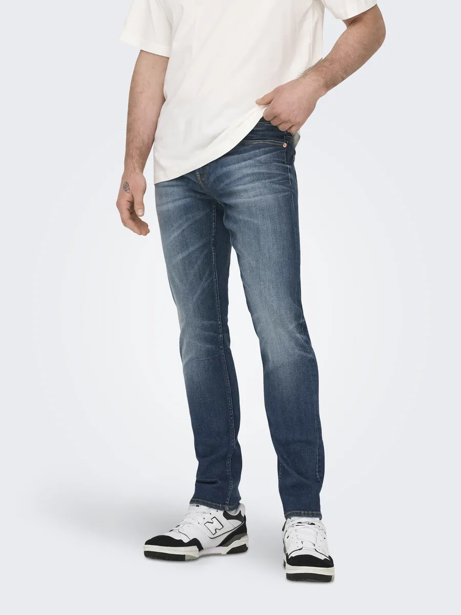 Джинсы узкого кроя ONLY & SONS "OS ONSLOOM SLIM BLUE GREY 40", с эффектом потертости, темно-синий