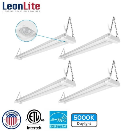 Leonlite 4ft Linkable LED Motion Sensor Shop Lights 40W(120W Equiv.) 4100lm 5000K Daylight Pack of 4