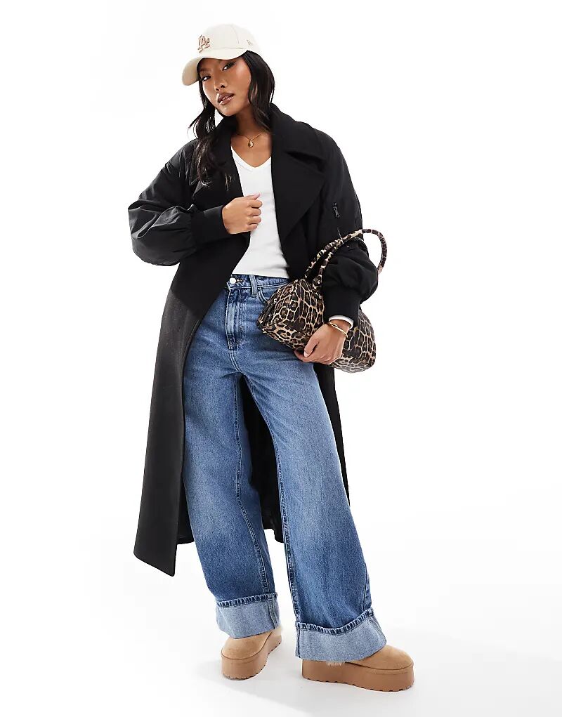Сплайсированное официальное пальто-бомбер черного цвета ASOS, Черный, Сплайсированное официальное пальто-бомбер черного цвета ASOS