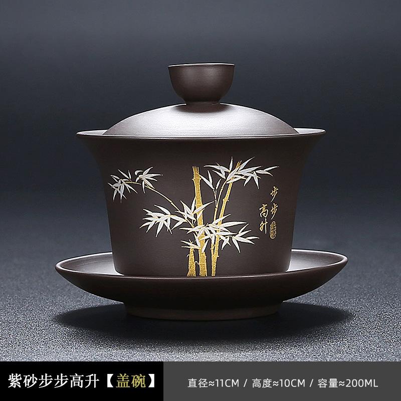 Фиолетовая песочная чаша-крышка в форме подковы, бытовой чайный набор Кунг-фу средней и большой вместимости, чайная чашка, подарок, чашка Саньцай, защита от ожогов, ручной чайник