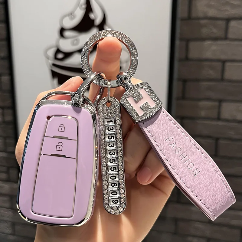 Фиолетовый ТПУ чехол для автомобильного ключа, оболочка для Toyota Camry Prius Corolla чехол CHR Prado 2018 RAV4, автомобильный брелок