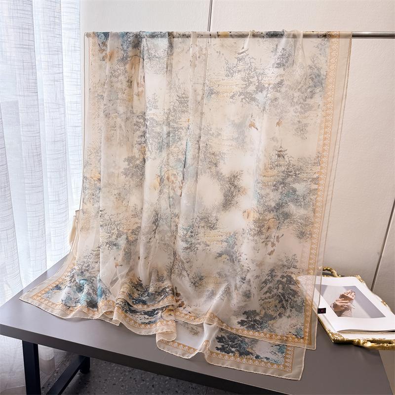 Фиолетовый Цветок Рифма Шифрование Юроу Марлевая Печать Весенне-Летний Шелковый Шарф Большой Длинный Шарф Дорожная Шаль Солнцезащитный Женский Шарф Головной Платок 185*120CM
