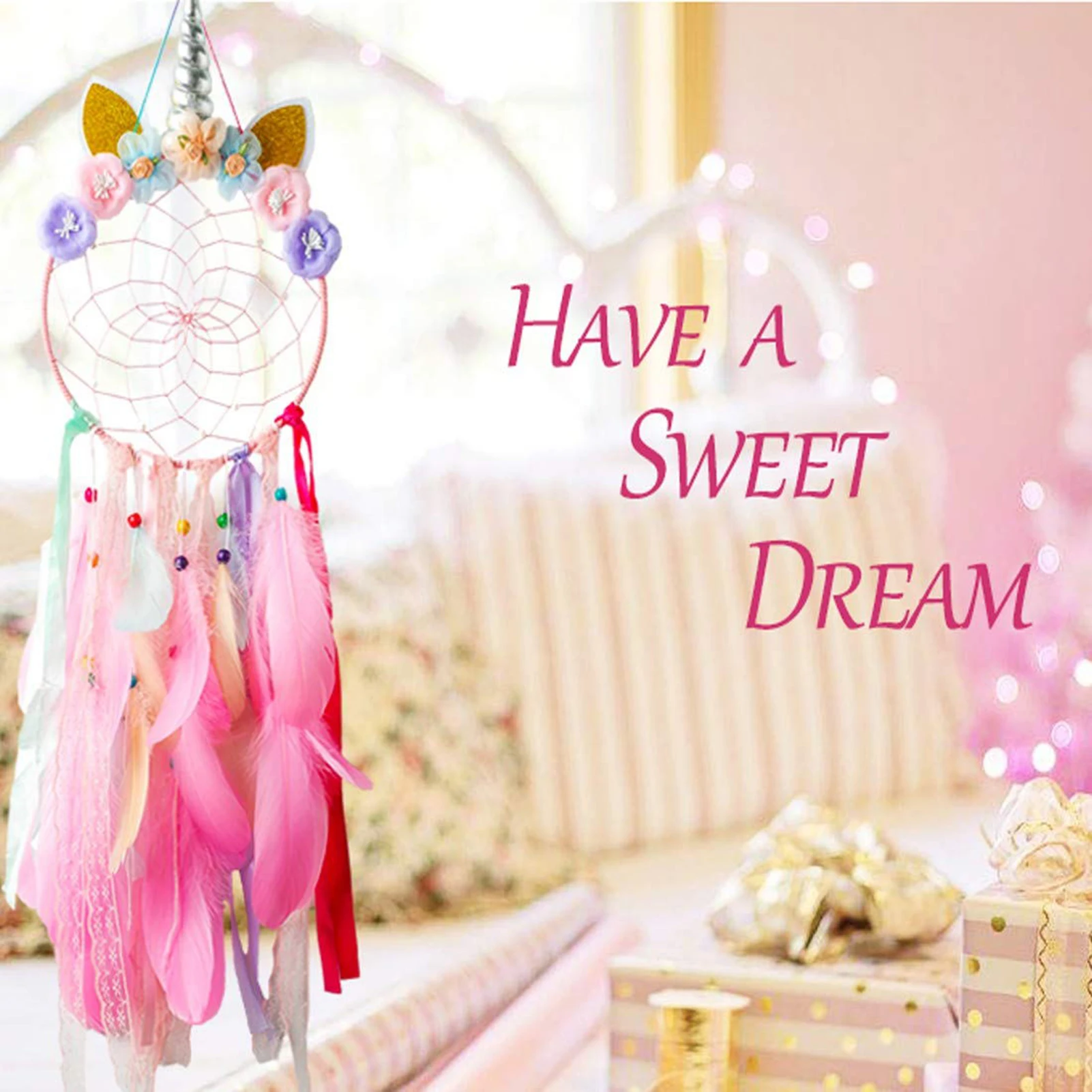 Фиолетовый настенный декоративный подвесной Единорог Ловец ручной работы