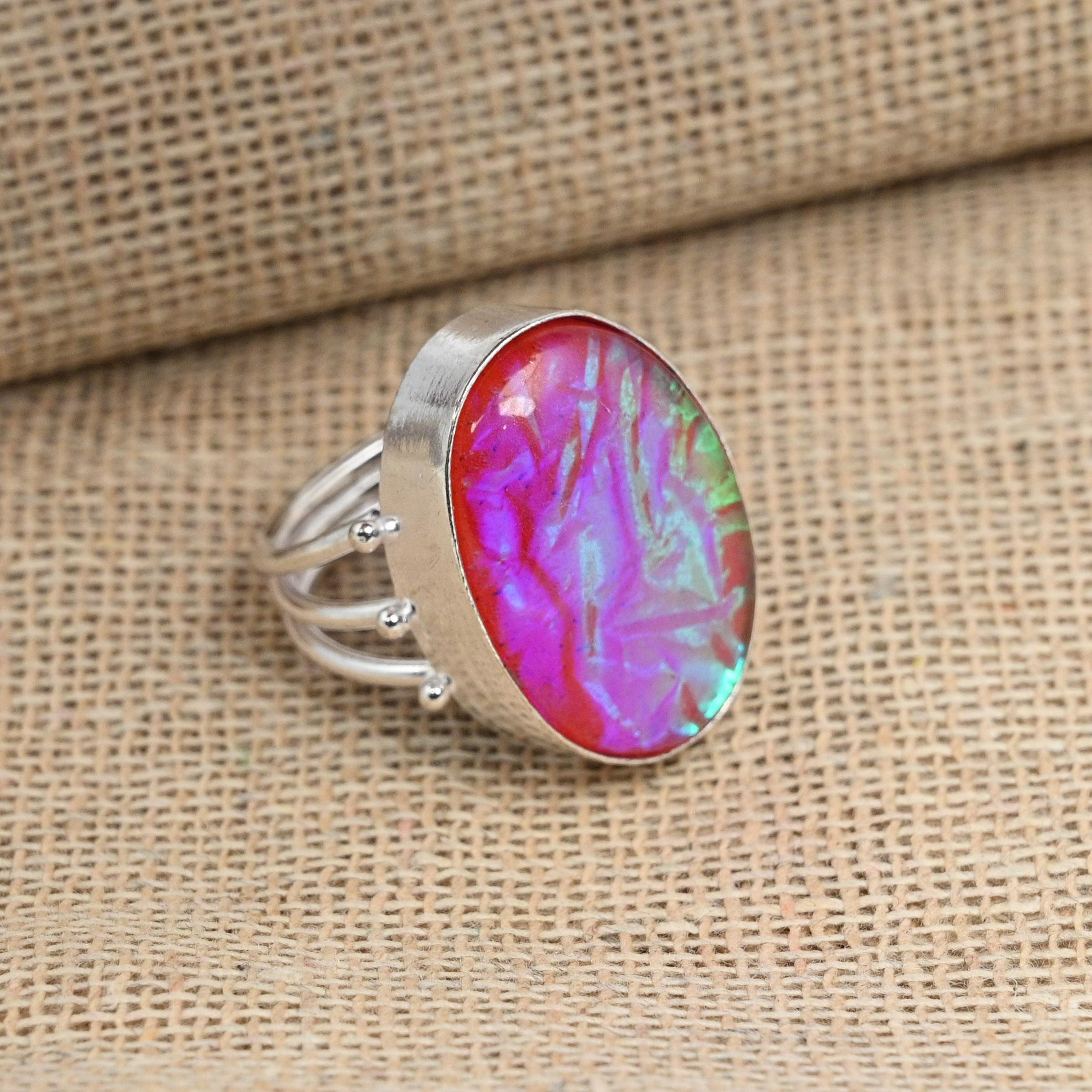Фиолетовый тройной опаловый драгоценный камень стерлингового серебра 925 пробы Ювелирное кольцо ручной работы Мемориальное кольцо 8 фиолетовый