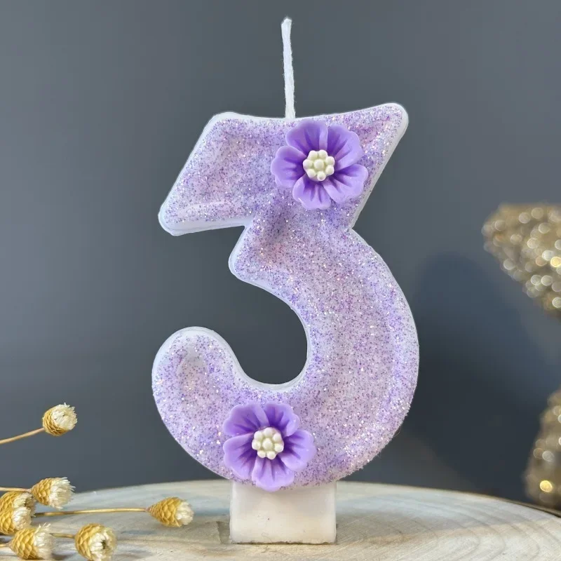Фиолетовый цветок, цифры, свечи на день рождения, цветы, топперы для торта, цифровой торт на день рождения, свадьбу, день рождения, свечи, торты