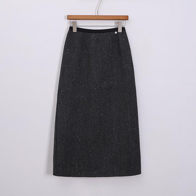 Фиона Осень/Зима Корейская Приталенная Юбка Миди из Шерсти с Пайетками: Универсальный однотонный цвет для женщин Extra Large серый