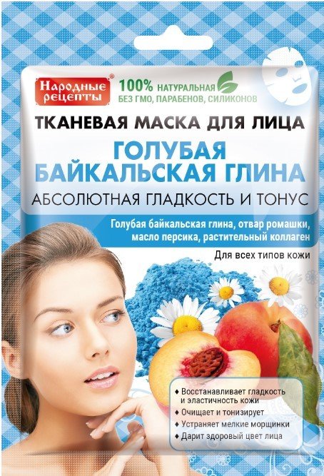 Фитокосметик Маска для лица тканевая Народные рецепты Голубая Байкальская глина (25 г)