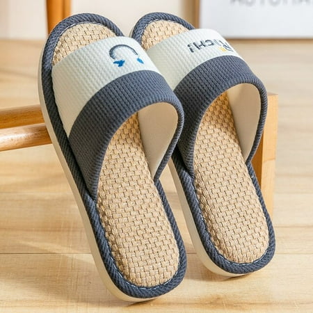 CoCopeaunt New Couple Cotton Linen Home Leisure Indoor Slippers Cartoon Smiley Slippers Men and Women Floor Slippers Household Slippers