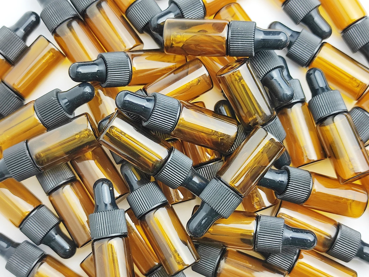 Флаконы для эфирных масел, 2 мл, 3 мл, 5 мл, 50 шт./лот, из янтарного стекла со стеклянными пипетками