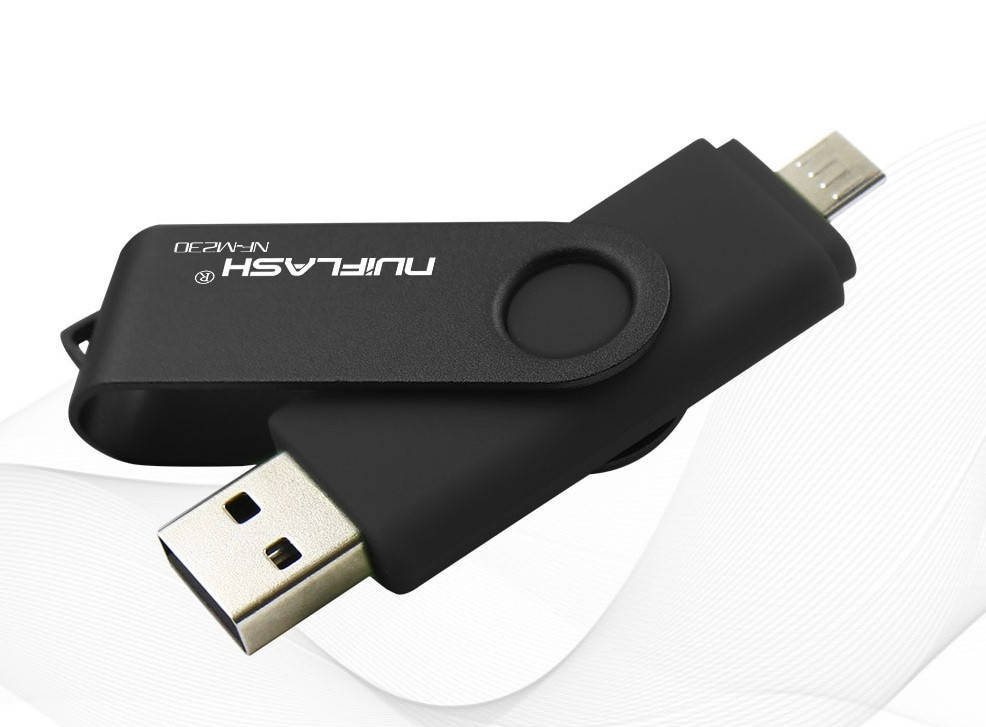 Оригинальная двухсторонняя флешка NUIFLASH. С одной стороны обычный USB накопитель, а с другой micro-USB флешка. Флешка, которая подходит, как к смартфону так и к компьютеру.