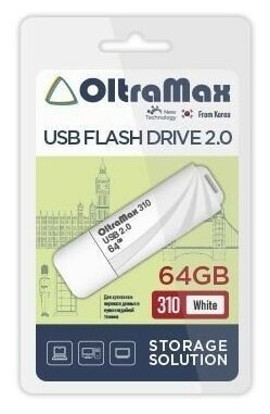Флешка 64Gb USB 2.0 OltraMax 310 OM-64GB-310-White, белый (OM-64GB-310-White), OM-64GB-310-White