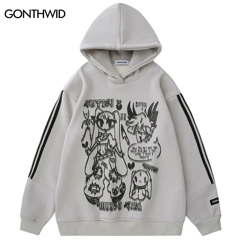 Флисовая Толстовка в стиле Харадзюку Y2K, пуловер в стиле ретро и хип-хоп с мультипликационным японским аниме и графическим принтом, уличная одежда, свитшот с капюшоном в стиле панк, 2023