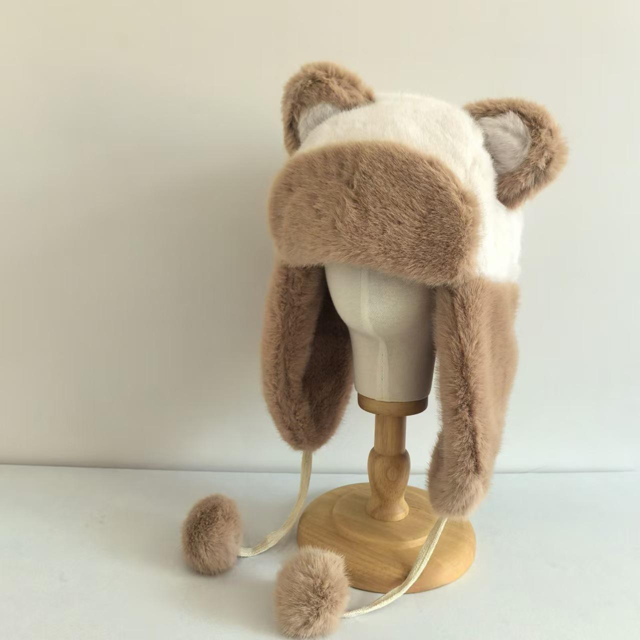 Флисовая уличная защитная шапка для ушей, теплая лыжная шапка, плюшевая шапка, женская зимняя утолщенная, милая плюшевая шапка с изображением кошки Lei Feng M(56-58cm)