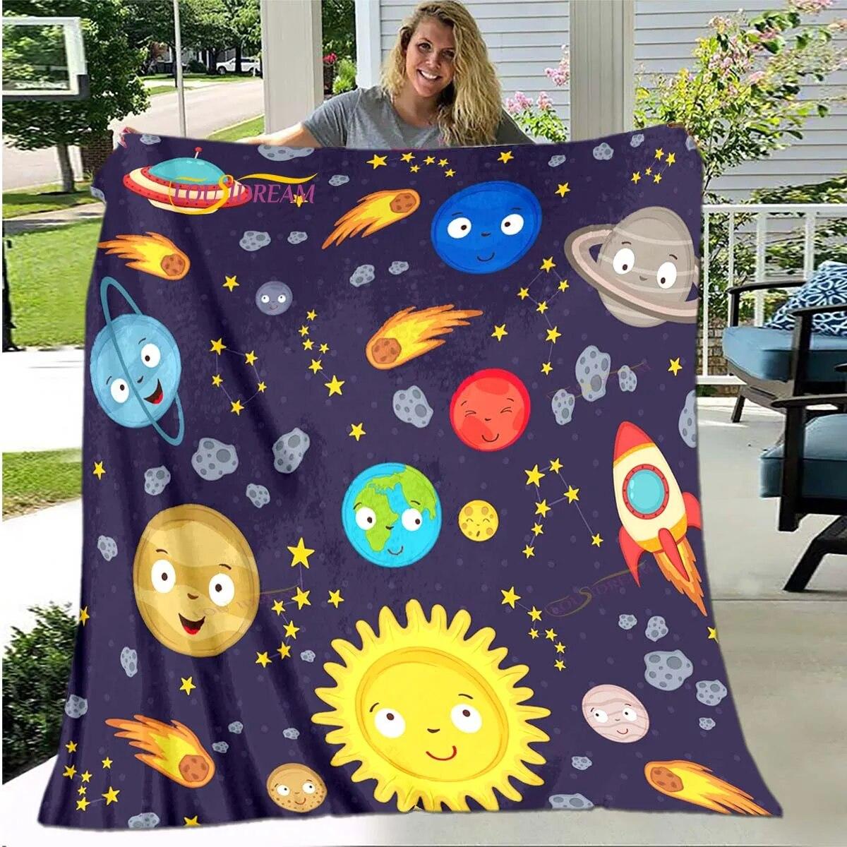 Флисовое одеяло с принтом Солнечной системы, Галактики, Космической планеты, для кроватей, пешего туризма, пикника, толстое одеяло, покрывало, флисовое одеяло 75x100cm (30x40inch)