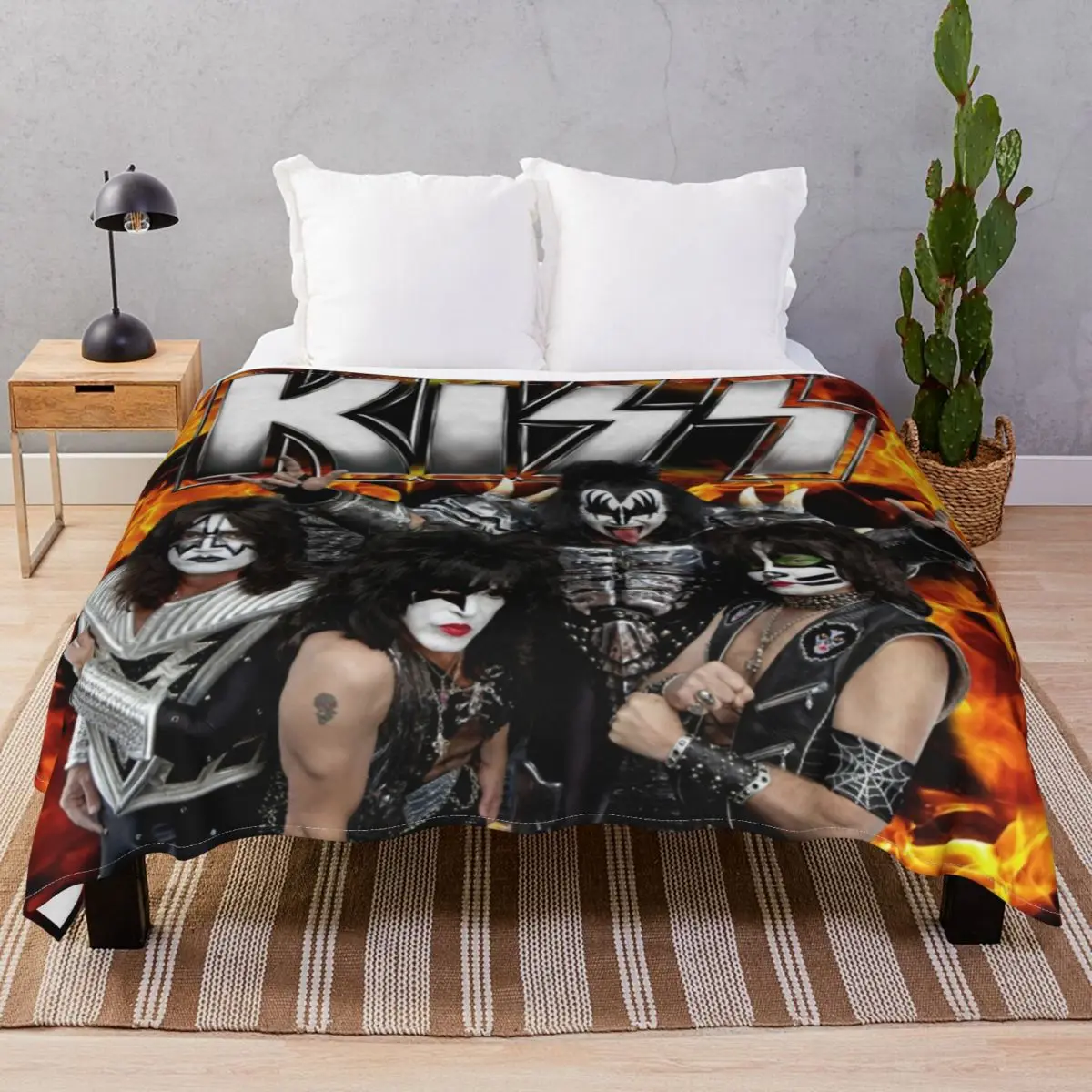 Флисовое одеяло KISS с логотипом и лентой, искусственное пушистое одеяло для кровати, дивана, лагеря, офиса