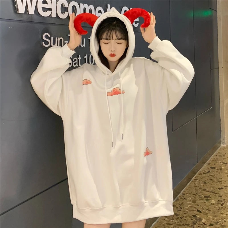 Флисовые толстые свободные свитшоты XZ2984 с мультяшным принтом рога