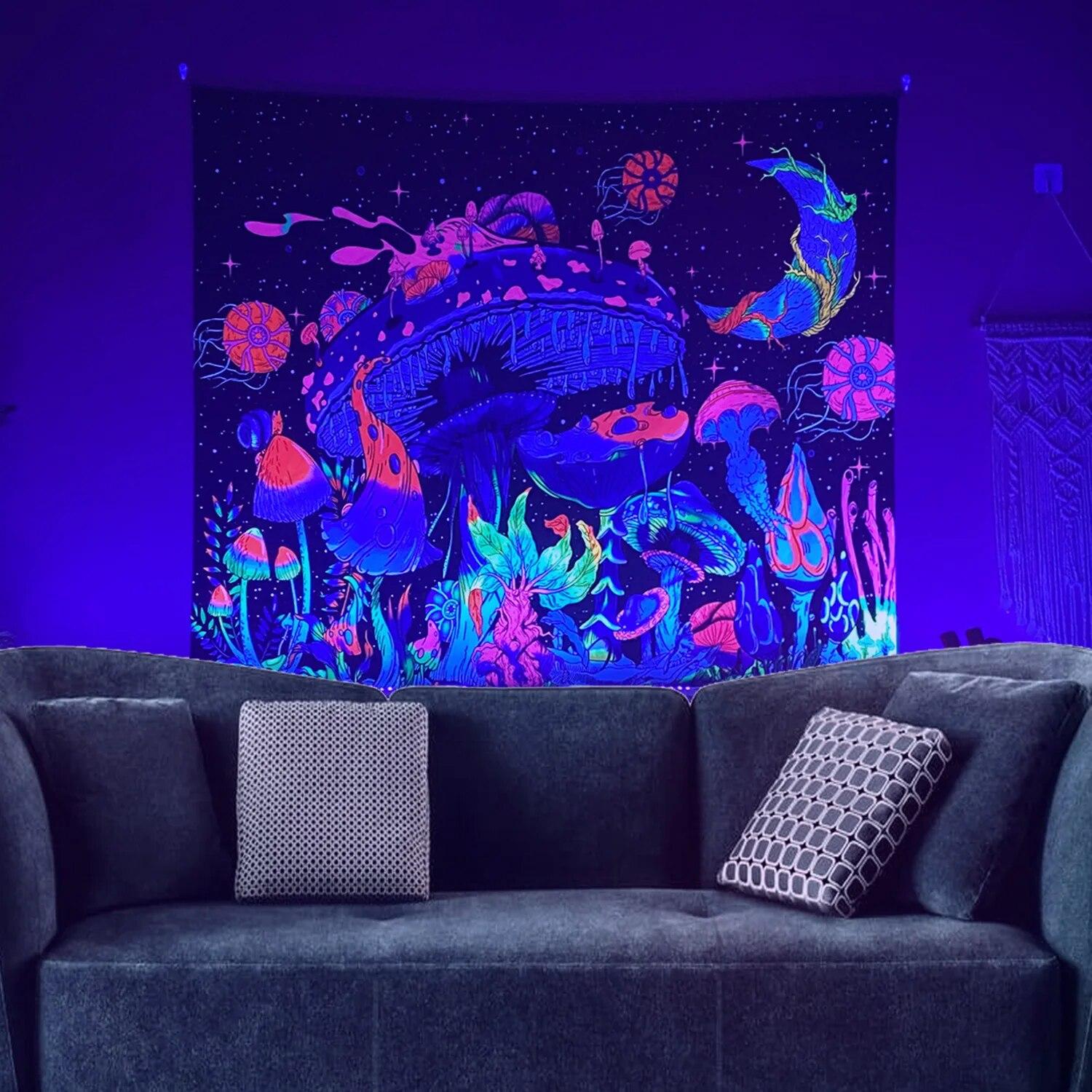 Флуоресцентный гобелен УФ-психоделический гриб Украшение интерьера Эстетический хипстер 100x75cm