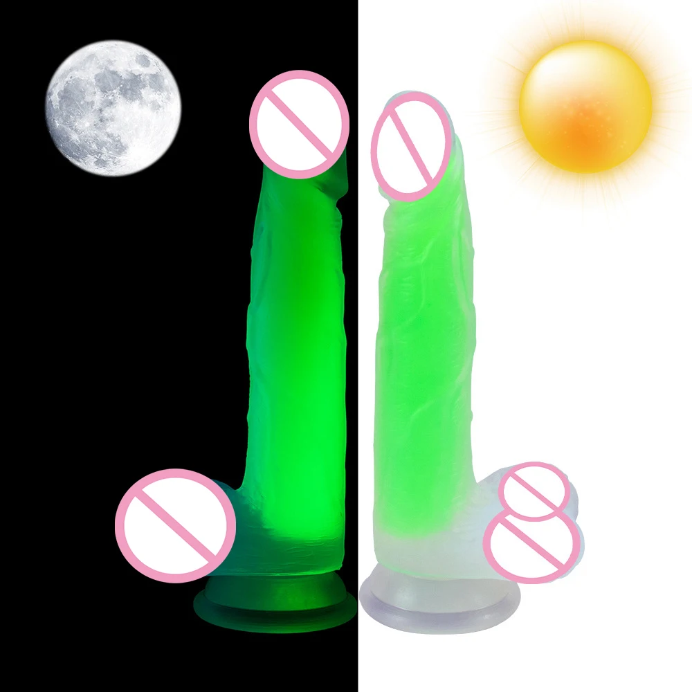 Флуоресцентный светящийся большой пенис, устройство, реалистичный фаллоимитатор для анального страпона, лесбийский член, геи, секс-игрушки, БДСМ