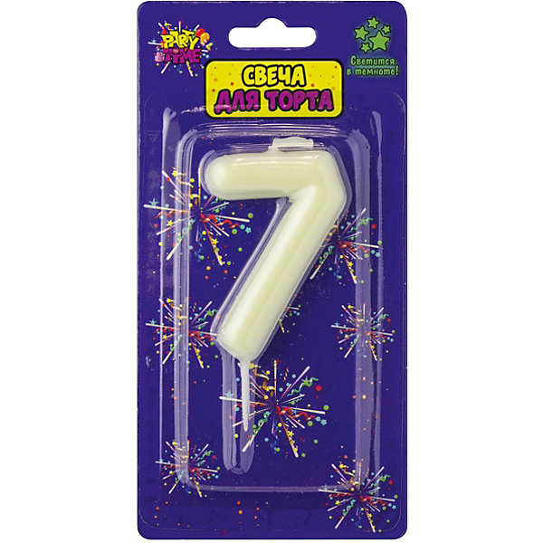 Однотонная свеча-цифра светится в темноте благодаря флюоресцентным свойствам. Дополнена шпажкой для удобства крепления на праздничный торт.