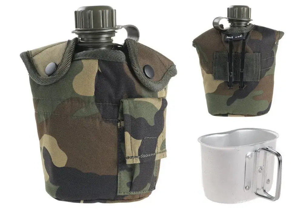 Фляга 1 л. тактическая армейская из пластика в чехле с котелком "Mil-TEC"