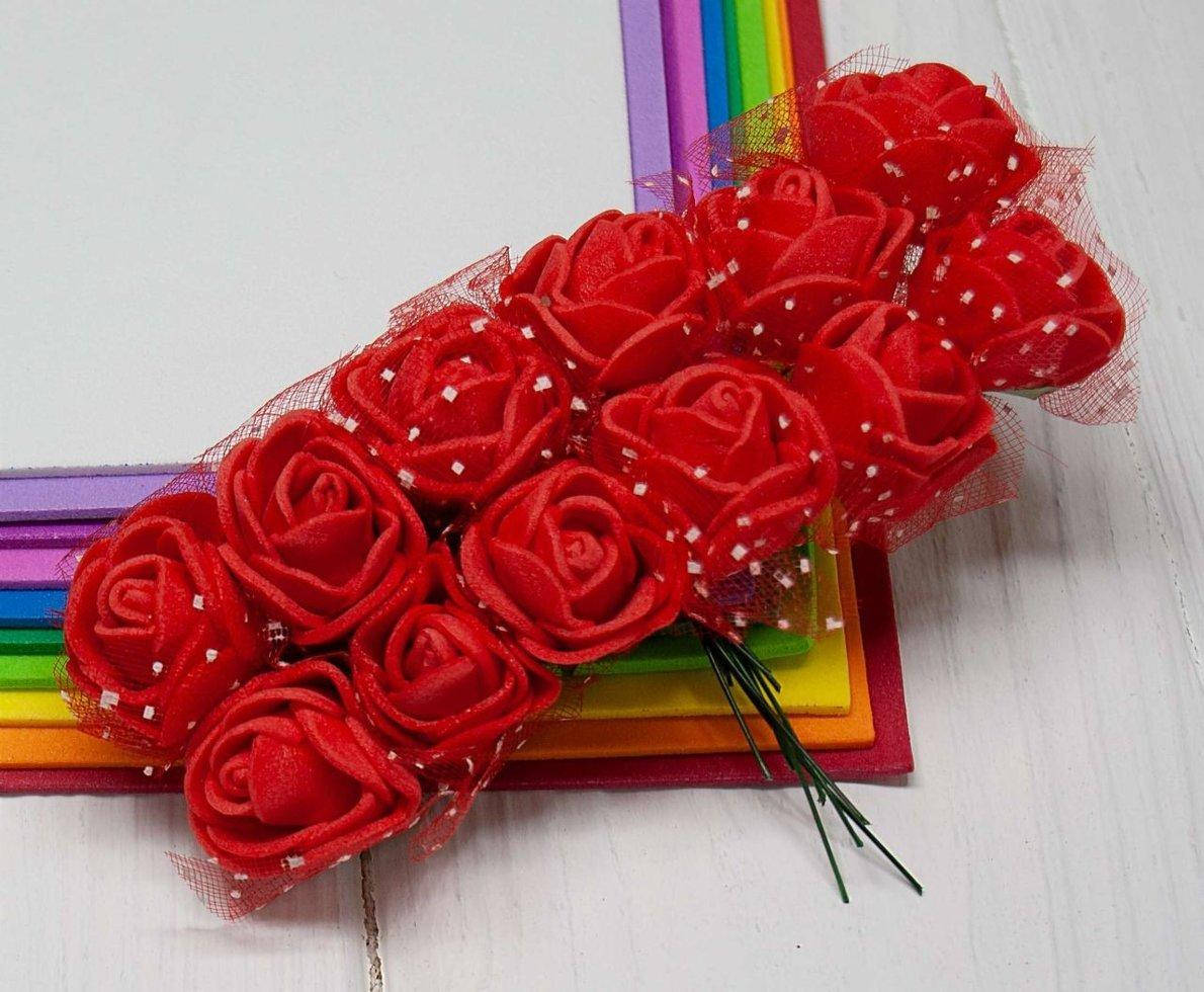 Фоамирановые розочки с Фатином (12шт) цвет- Красный
